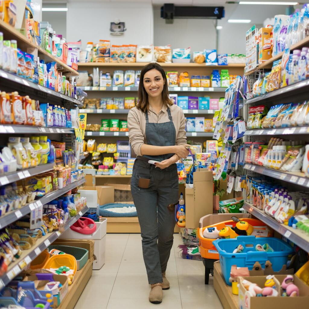 Ассортимент игрушек, когтеточек, лежанок, мисок